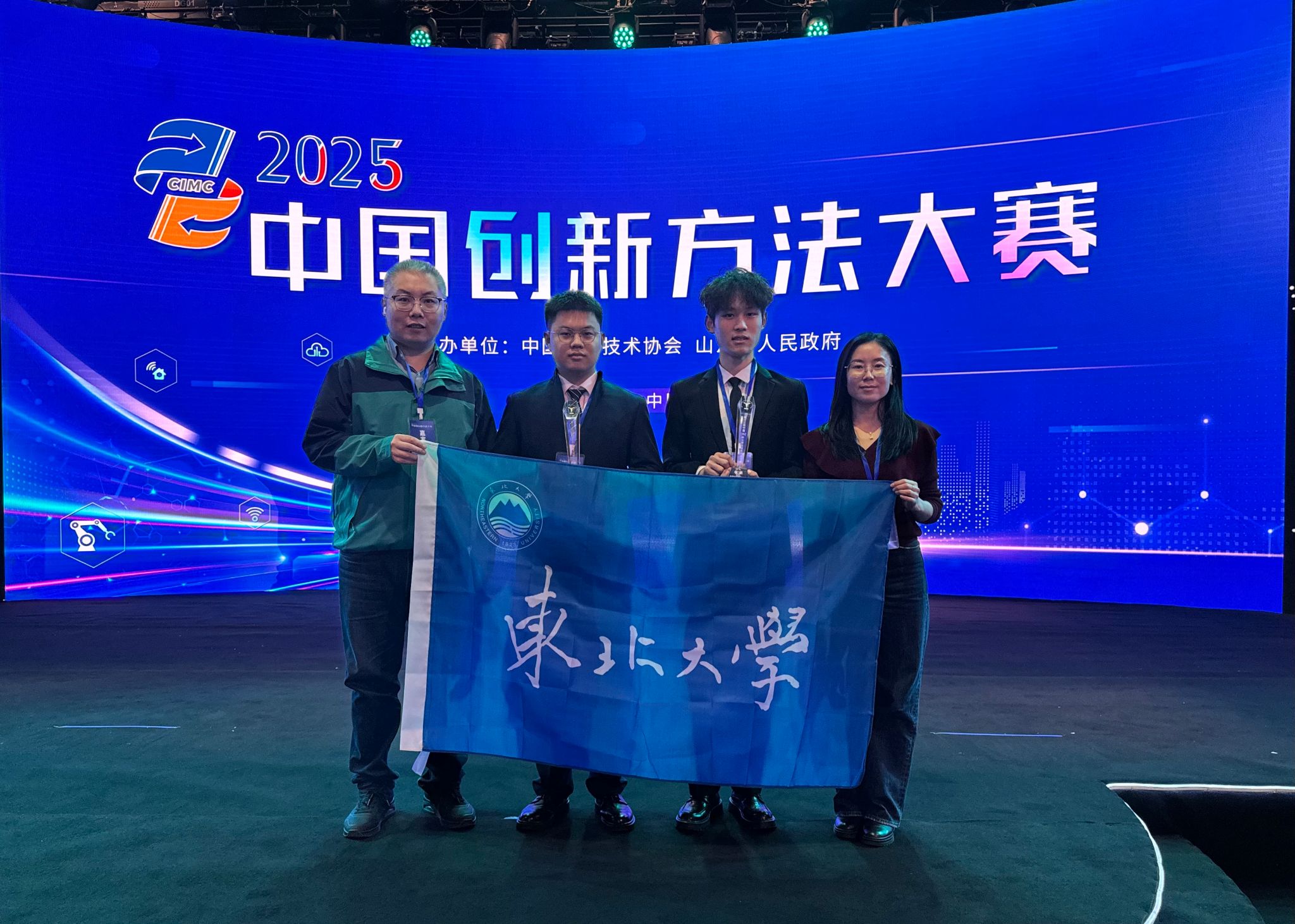 11月21日,由中国科学技术协会、山东省人民政府共同主办的2025年中国创新方法大赛电视擂台赛暨颁奖仪式在济南举办。作为专项赛之一的中国TRIZ杯大学生创新方法大赛金、银、铜奖获奖团队受邀现场观摩电视擂台赛并在颁奖仪式上接受表彰。东北大学总校及秦皇岛分校在中国TRIZ杯大学生创新方法大赛金银铜奖6强中占据2个席位,分别以全国第二和全国第六的优异成绩荣获银奖1项、铜奖1项。东北大学创新创业学院教师朱翠兰、信息科学与工程学院学生翟浩迪以及秦皇岛分校悉尼智能科技学院教师韩鹏、学生刘洛源分别作为师生代表受邀出席,与全国众多企业和大学生创新方法爱好者共襄盛典、载誉而归。
